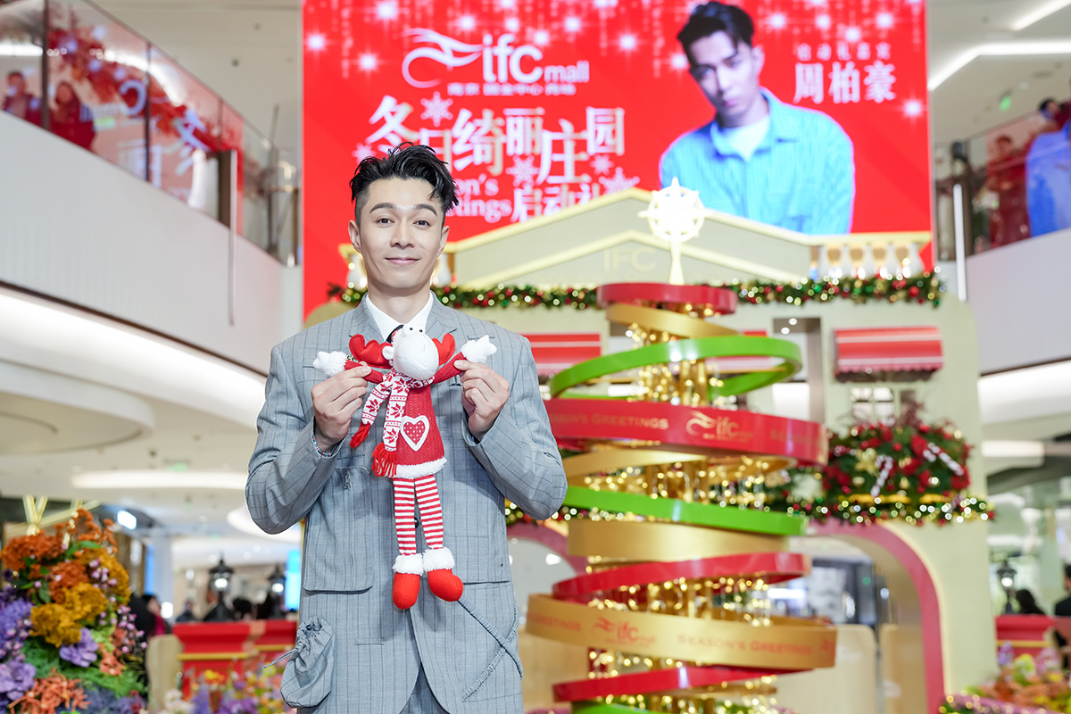 12月22日下午,中国香港唱作歌手/演员周柏豪现身南京ifc商场一楼中庭,特别受邀出席冬日绮丽庄园启动礼,与南京观众朋友近距离互动。周柏豪的现身吸引众多粉丝及媒体守候。活动现场,周柏豪与粉丝近距离接触互动玩游戏,掀起热潮,更到Dior, Van Cleef & Arpels, Tiffany&Co., Vacheron Constantin, Celine, FENDI, BALENCIAGA, Debeers, Leica等多家店铺探店购物,盛赞南京ifc商场优质的购物环境和贴心细致的服务,以及良好的购物体验。