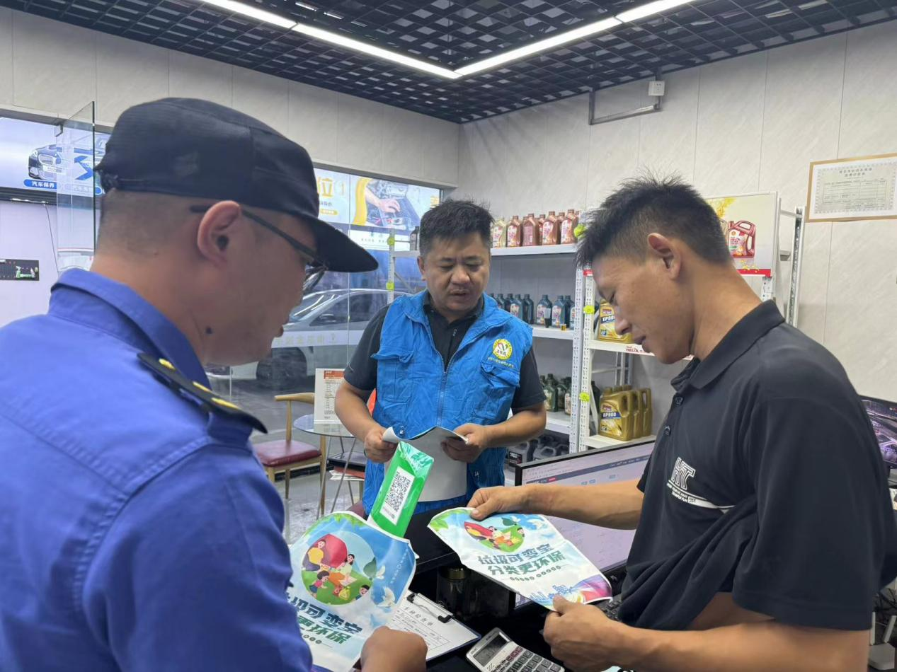 为进一步增强辖区内商户垃圾分类意识,营造垃圾分类的浓厚气氛,推动垃圾分类成为低碳生活新时尚,进一步优化营商环境,西善桥街道综合行政检查执法大队邀请公众委员与城市治理志愿者组织开展“全民践行新时尚 垃圾分类入商户”活动。